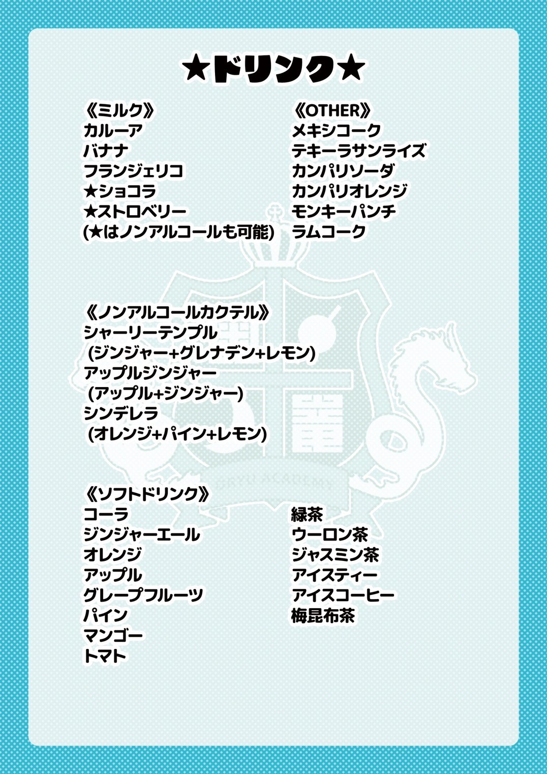 • メニュー